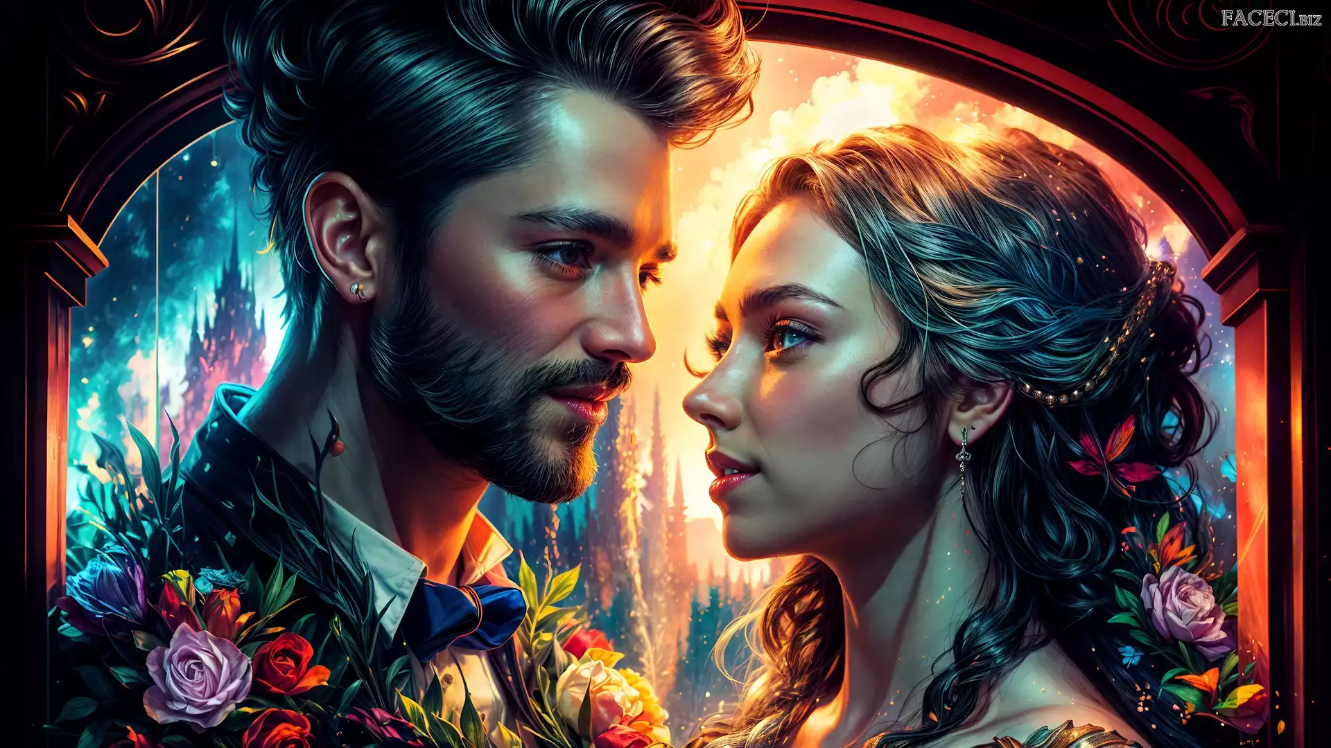 Zarost, Mężczyzna, Grafika, Kobieta, Kwiaty - faceci.biz