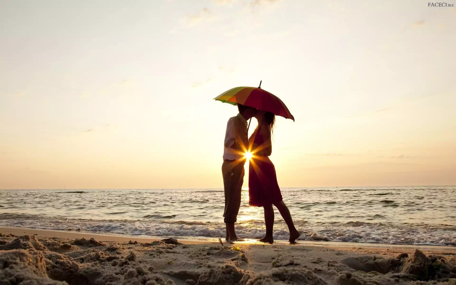 Plaża, Zakochana, Słońca, Promienie, Para, Morze - faceci.biz